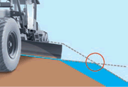 Сохранить заданные значения уклона. Датчик продольного уклона работает на базе динамичного жидкостного сенсора. Он принимает актуальные показания измерения уклона отвала, продольного уклона грейдера и вращения отвала, и учитывает влияние помех, как например, ускорение или толчки. Это обеспечивает выдерживание желаемого поперечного уклона.