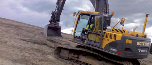 Датчики наклона на стреле экскаватора и роторе регистрируют все перемещения машины. Кабели прокладываются таким образом, чтобы обеспечить возможность отсоединения наклоняющего ротора или быстроразъемной муфты для последующей замены ковша или возможность дальнейшей работы с другим навесным оборудованием.
